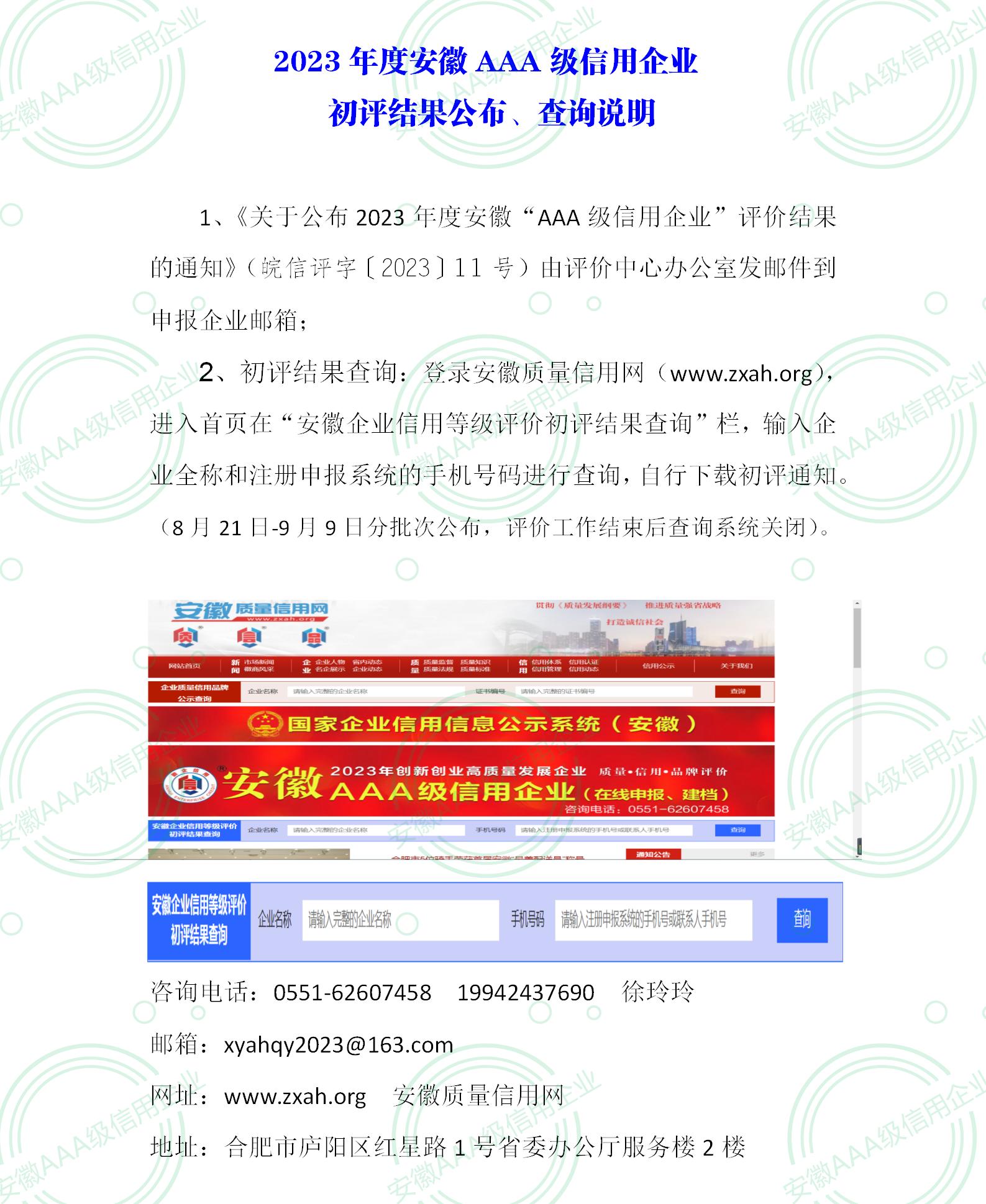 2023年度安徽aaa级信用企业 初评结果公布、查询说明
