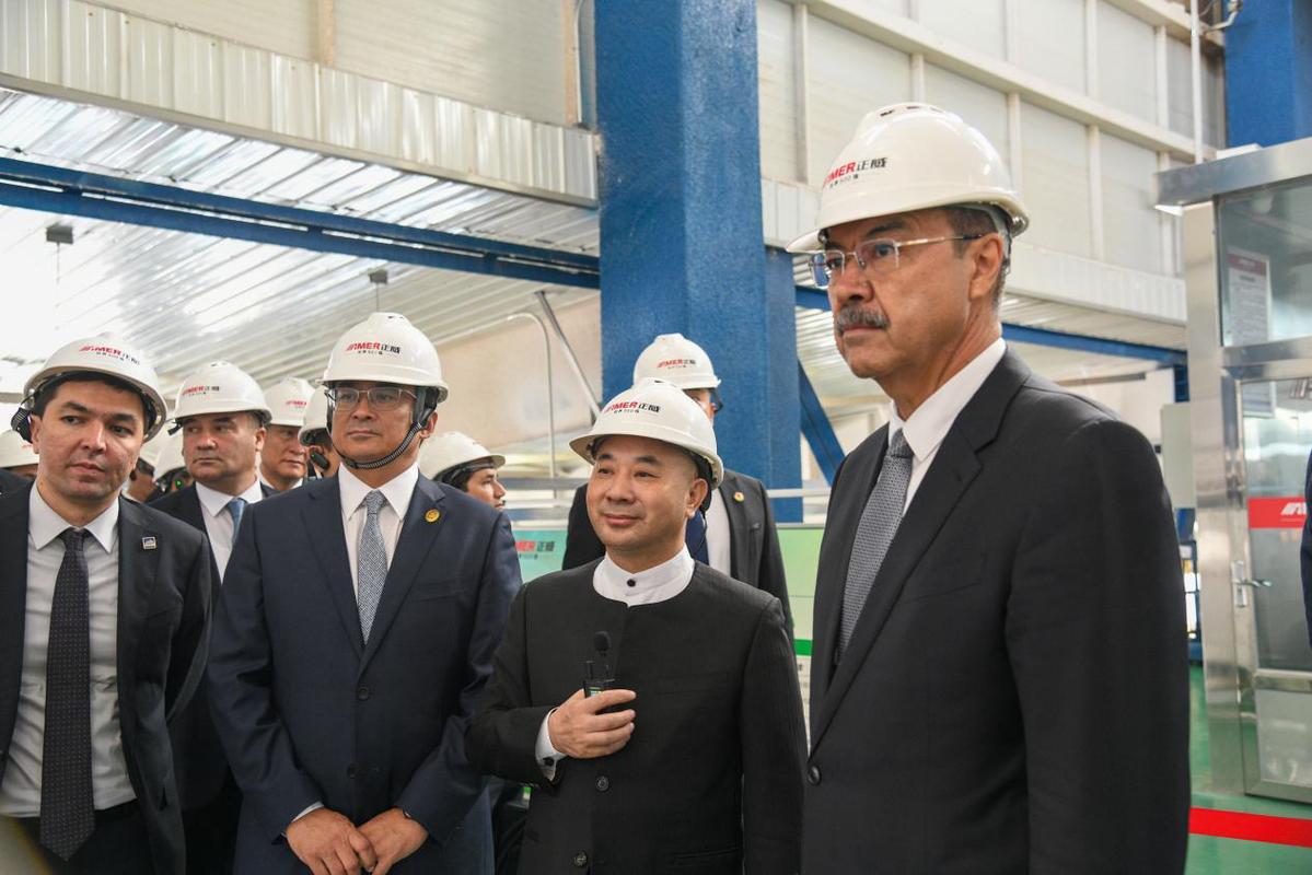 座谈会后,阿里波夫一行在新疆维吾尔族自治区人民政府副主席麦尔丹·木盖提,乌鲁木齐市委副书记、市长牙合甫·排都拉等领导的陪同下,前往正威集团新疆项目凯发pa旗舰下载的产品展示厅和生产车间考察,详细了解设备性能、生产工艺及产品特点。