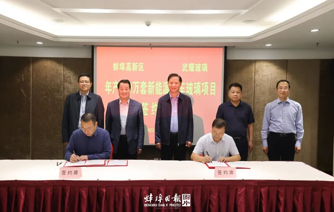 11月3日,蚌埠高新区与武汉武耀安全玻璃股份有限公司签约,携手建设年产400万套新能源汽车玻璃项目。蚌埠市委书记黄晓武出席签约仪式并致辞。中国工程院院士、中国建材集团首席科学家、中建材玻璃新材料研究总院党委书记、院长彭寿,武汉武耀安全玻璃股份有限公司董事长郝军,蚌埠市副市长潘君齐出席。