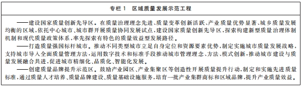 (八)提升产业集群质量引领力。支持先导性、支柱性产业集群加强先进技术应用、质量创新、质量基础设施升级,培育形成一批技术质量优势突出、产业链融通发展的产业集群。深化产业集群质量管理机制创新,构建质量管理协同、质量资源共享、企业分工协作的质量发展良好生态。组建一批产业集群质量标准创新合作平台,加强创新技术研发,开展先进标准研制,推广卓越质量管理实践。依托国家级新区、国家高新技术产业开发区、自由贸易试验区等,打造技术、质量、管理创新策源地,培育形成具有引领力的质量卓越产业集群。