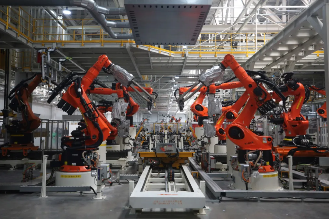 大众安徽模块化电驱动平台工厂车身车间一角。新华社记者 杜潇逸 摄