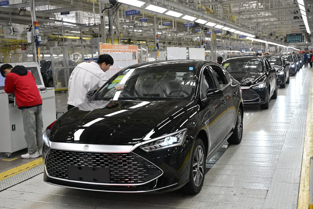 比亚迪汽车有限公司总装生产线上,工人正在忙碌。全媒体记者 张大岗 摄