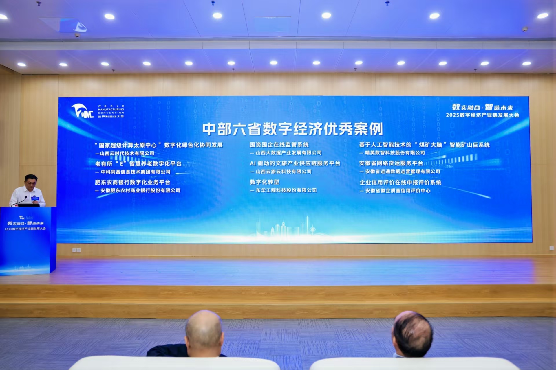 世界制造业大会以“智造世界 创造美好”为主题,汇聚了来自中国、德国、美国、日本等国的政商领袖、行业专家及头部企业代表超3000人。作为世界制造业大会的核心分论坛之一,2025数字经济产业链发展大会“数实融合链动未来”,重点围绕智能制造、工业互联网、大数据应用、区块链赋能等前沿领域展开深度对话。集中展示中部地区在数字经济与实体经济深度融合中的标杆实践。