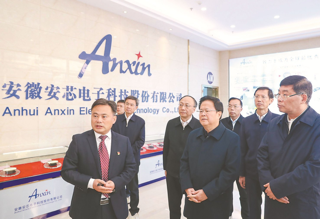 图为2021年11月25日,省委书记郑栅洁深入池州市安徽安芯电子科技公司调研,详细了解企业生产、销售及产业布局等情况。安徽日报记者 徐国康 摄